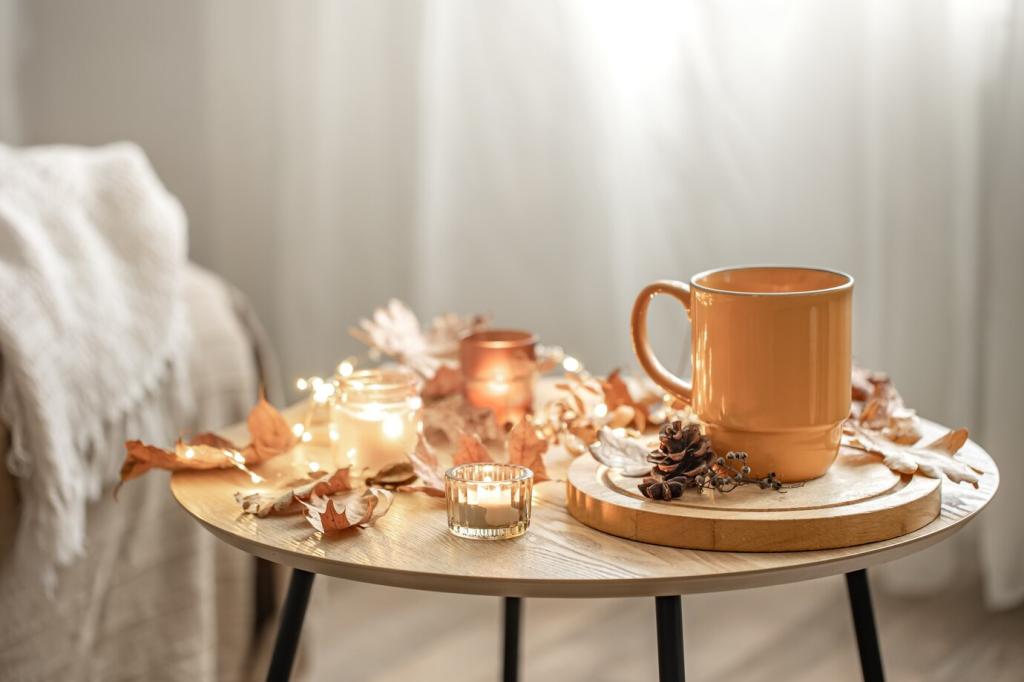 Wolle, Leinen und Baumwolle fühlen sich nicht nur gut an, sie altern auch schön. Aus Reststücken entstehen Kissenhüllen, Tischläufer oder Plaids. Achte auf griffige Webarten, denn Struktur fängt Licht und schafft Tiefe. Poste dein Lieblingsmaterial und verrate, welche Textur dich abends sofort entspannen lässt.
